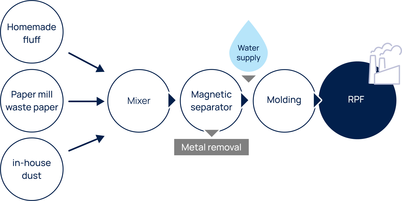 Waste plastics / Wood chips / Textile waste
