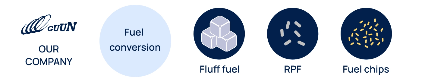 We recycle various waste collected from waste producers into raw materials and fuels such as wood chips and fluff fuel, and supply them to paper manufacturers and power companies via marine and land transport. They are used as boiler fuel and raw materials for products.