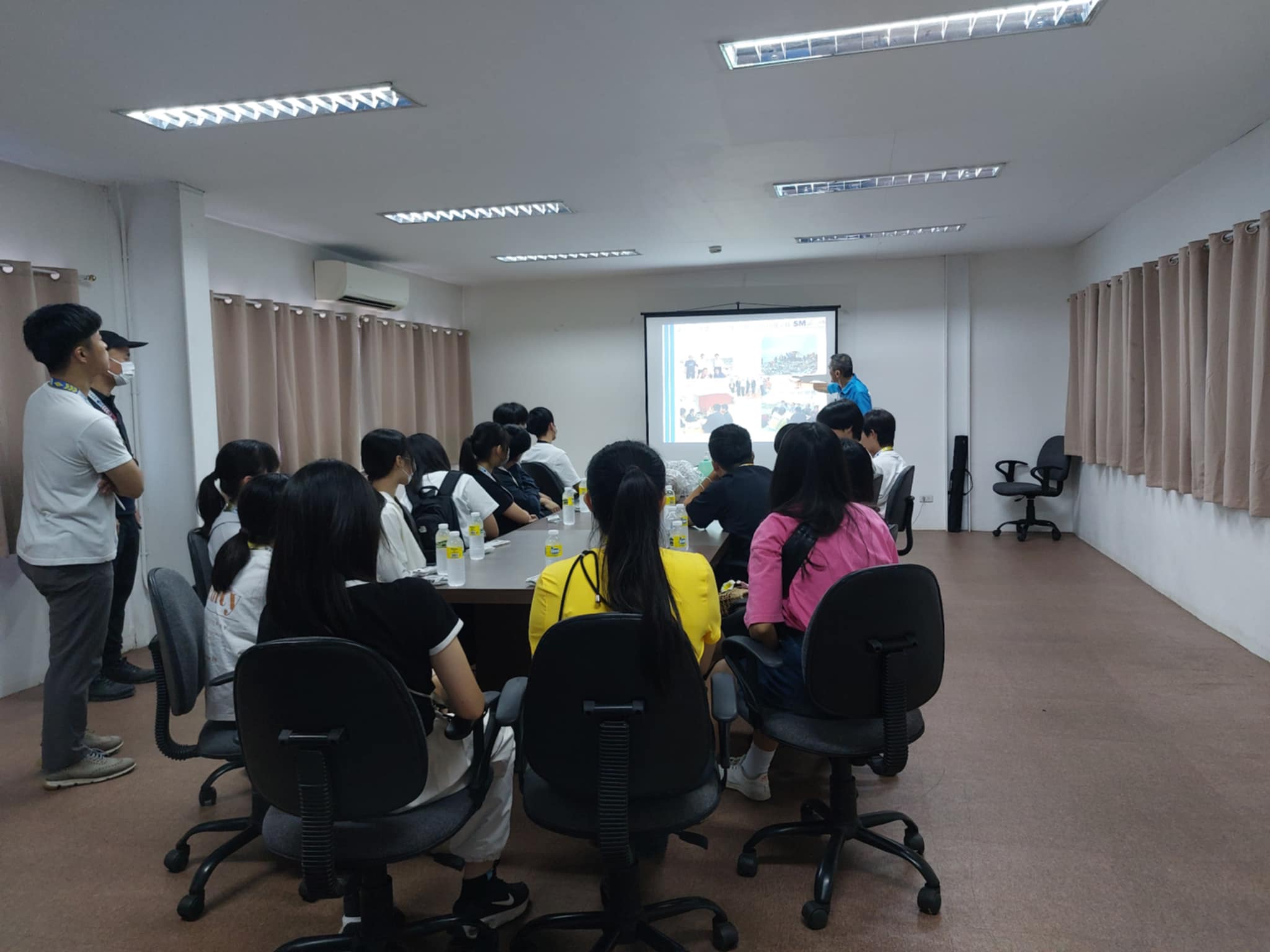 最初の座学では、日本とフィリピンにおける廃棄物処理の違いから始め、焼却炉のないフィリピンにおいて当社がどのように埋立削減・CO₂削減・環境保全に取り組んでいるかを紹介しました。