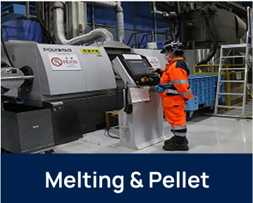With the goal of creating a closed-loop system from plastic to plastic, we have established a pellet production line at our plant as part of our material recycling facilities. We are actively working on plastic resource circulation and promoting the material recycling of used plastics.
